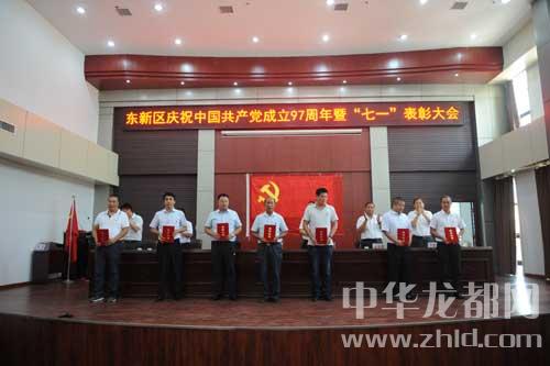 中華龍都網(wǎng)訊(周口報(bào)業(yè)全媒體記者張勁松文/圖)6月22日,東新區(qū)召開慶祝中國共產(chǎn)黨成立97周年暨“七一”表彰大會(huì)。東新區(qū)黨工委書記閆立超出席會(huì)議并講話,管委會(huì)全體班子成員出席會(huì)議,區(qū)直機(jī)關(guān)全體科級(jí)干部,各鄉(xiāng)(辦)書記、副書記、組織委員和組織干事,基層行政村(社區(qū))支部書記、2018年新黨員代表、受到表彰的先進(jìn)基層黨組織負(fù)責(zé)人、優(yōu)秀黨務(wù)工作者、優(yōu)秀基層黨支部書記和優(yōu)秀共產(chǎn)黨員等共計(jì)170余人參加會(huì)議。會(huì)議由東新區(qū)管委會(huì)主任張建黨主持。
