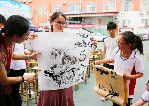 中華龍都網(wǎng)訊(周口報業(yè)全媒體記者 李瑞才 通訊員 孫廣合 胡洪濤)6月26日上午,鹿邑縣政協(xié)和縣文聯(lián)聯(lián)合開展“到人民中去”送書畫進校園活動,組織10余位知名書畫家走進校園,現(xiàn)場揮毫潑墨,為師生義寫字畫。