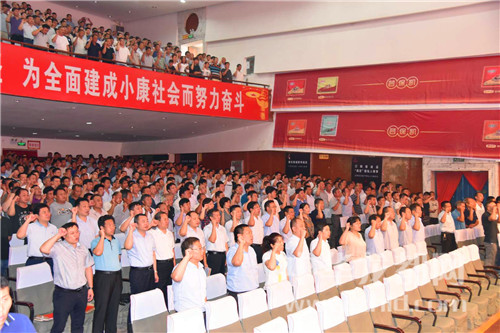 會上,盧偉帶領與會人員進行脫貧攻堅全面沖刺集體宣誓。