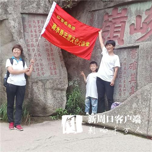 7月12日至7月21日,商水縣正源文化社組織開展“山東追圣賢”夏令營。該社一行57人,年齡最大的63歲,最小的4歲,還有一名腿部有傷的,但是他們憑著堅強意志,櫛風沐雨,于18日徒步登上泰山之頂。