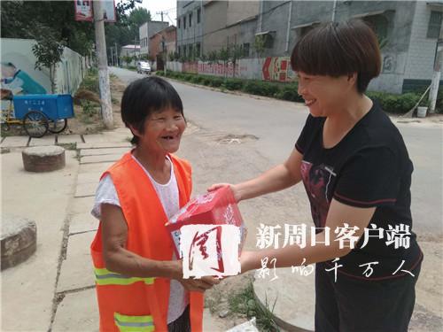 上午10時(shí)許,欣中基清潔公司經(jīng)理張志宏來到邵寨行政村??吹铰访娓筛蓛魞簦芨吲d。除了例行巡視,張志宏此行還有一項(xiàng)任務(wù):向每位保潔員發(fā)放一件飲料?!疤鞖獬掷m(xù)高溫,保潔員們露天辛勤勞動(dòng),給村民們創(chuàng)造了良好的生活環(huán)境。因此,公司決定開展慰問活動(dòng)。”接過飲料,邵天錄等6名保潔員滿臉笑容地連聲道謝。