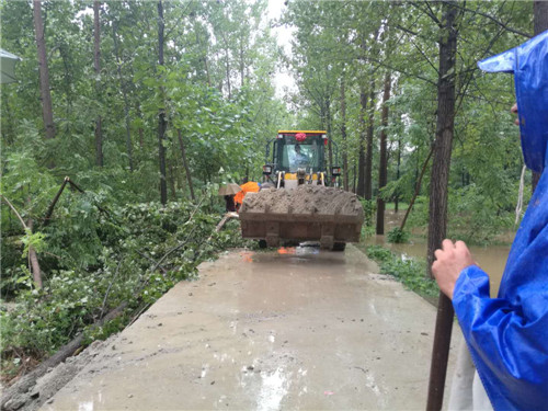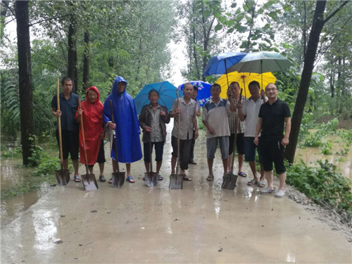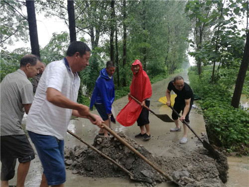 8月19日早7點,陳留張駐村工作隊長李成功、村副主任張建靈發(fā)現(xiàn)險情后,便開始緊急會商,提出科學(xué)搶修方案。最后確定,調(diào)用本村的鏟車,利用本村商砼站的石料,組織本村的村民,迅速趕赴事發(fā)地點開展搶修工作。
