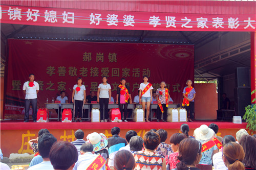 此次表彰大會(huì),郝崗鎮(zhèn)通過(guò)層層篩選,共評(píng)選出6名好婆婆,15名好媳婦,8戶(hù)孝賢之家,孝老敬老、接愛(ài)回家先進(jìn)人員24人,十星級(jí)文明戶(hù)582戶(hù)??h政協(xié)副主席、工商聯(lián)主席彭發(fā)光及鎮(zhèn)全體領(lǐng)導(dǎo)班子成員、干部職工、各個(gè)行政村“兩委”成員、各駐村工作隊(duì)、駐村第一書(shū)記及受表彰的“好婆婆、好媳婦、孝賢之家”400余人參加了會(huì)議。會(huì)議由鎮(zhèn)長(zhǎng)姚哲主持。
