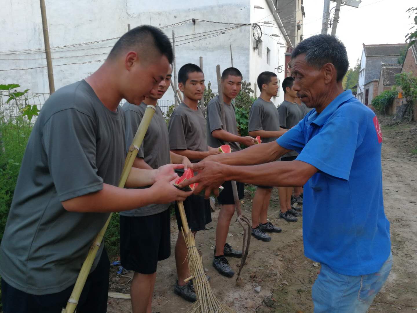 此次活動(dòng)深受鄉(xiāng)親們的贊賞和歡迎,有的老鄉(xiāng)拿出自家的勞動(dòng)工具,與我們 “小戰(zhàn)士”一起勞動(dòng),有的送來(lái)礦泉水和西瓜慰勞正在勞動(dòng)中的“小戰(zhàn)士”,展現(xiàn)出了一幅軍愛民、民擁軍,軍民魚水情深的畫卷。