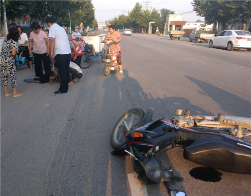 當(dāng)日6時(shí)許,趙紅建在寧平鎮(zhèn)扶貧返回縣城行駛至金丹大道工業(yè)區(qū)段時(shí),發(fā)現(xiàn)一輛摩托車倒在馬路中間,一位老人躺臥車邊,目測老人胳膊、腿部傷情較重。