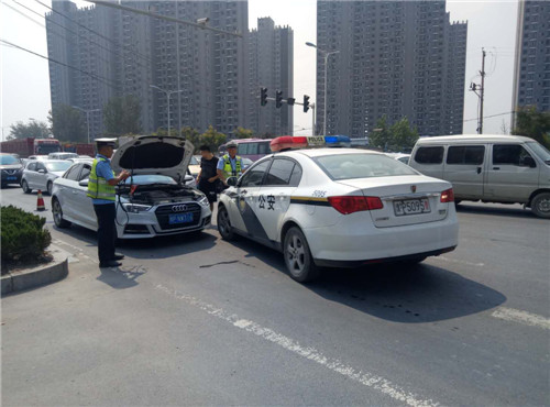 8月26日中午11點,周口港區(qū)公安分局民警發(fā)現(xiàn),一輛私家車行經(jīng)周項路周口港區(qū)路段時,發(fā)生故障停在快車道,影響道路暢通。港區(qū)交警部門負責人姜亞偉上前了解情況,得知汽車電瓶出現(xiàn)故障,無法正常發(fā)動。于是姜亞偉將警車開到私家車旁,用汽車電瓶連接線將警車電池與私家車鏈接,幫助車主啟動汽車,迅速恢復(fù)道路交通秩序。