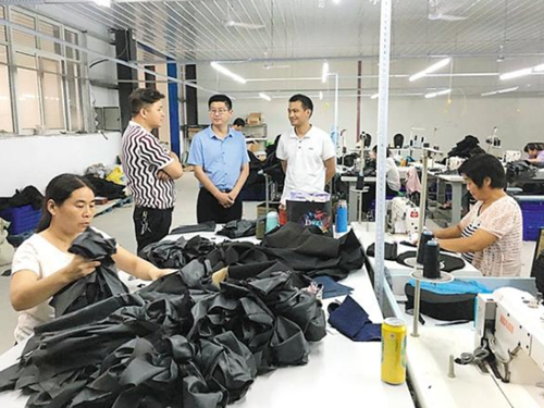 縣委常委、宣傳部長(zhǎng)李本磊在“巧媳婦”工程加工點(diǎn)調(diào)研