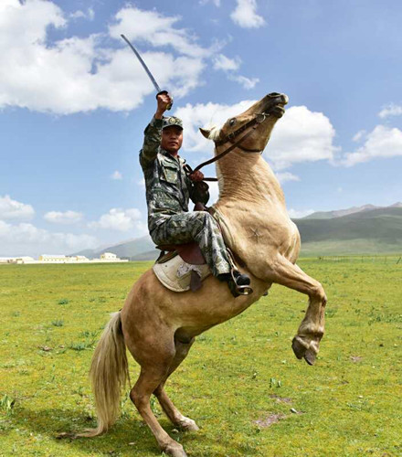 “一開始就‘認(rèn)慫’,哪還有一點騎兵精神可言?!壁w雪超暗自打氣。打那以后,趙雪超像根上緊的發(fā)條,和戰(zhàn)馬較上了勁。他晚上練劈刺,白天練馬術(shù)動作,被馬一次次地摔下去,他拍掉身上的塵土又一次次地躍上馬背……就是憑借這股不服輸?shù)捻g勁, 3個月后,趙雪超的訓(xùn)練成績在連隊名列前茅。