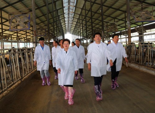 在花花牛集團總裁董碩峰等人的陪同下,張穎波一行先后到花花牛養(yǎng)殖事業(yè)部河南瑞亞牧業(yè)有限公司、花花牛乳品事業(yè)部河南花花牛生物科技有限公司鄭州分公司參觀調研。
