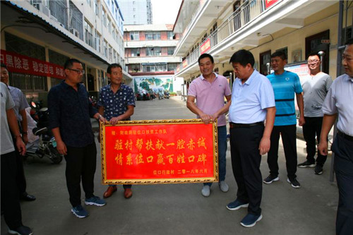 丁喜三代表財政局黨組對位口村民為財政局駐村工作隊贈送錦旗和牌匾表示感謝。稱縣財政局在縣委縣政府正確領(lǐng)導下,對張店鎮(zhèn)位口行政村進行駐村幫扶,三年來的駐村工作取得了很大的成績,也存在很多不足,希望位口村廣大群眾對財政局的駐村扶貧工作多提寶貴意見,同時對新駐村隊員提出高的要求,財政局和位口村干部群眾攜手共同把脫貧攻堅工作做好,確保不拖全縣的后腿,在奔小康的路上不落下一人。