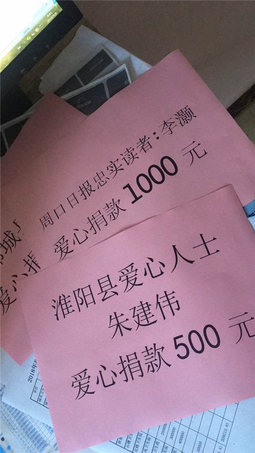 報(bào)道發(fā)出后,鄲城縣衛(wèi)計(jì)委主任付登霄第一時(shí)間作出響應(yīng),批復(fù)2000元錢(qián)資助趙家,囑咐駐村干部不能因家庭特困而導(dǎo)致孩子輟學(xué),付登霄表示將長(zhǎng)期關(guān)注這個(gè)貧困家庭;周口日?qǐng)?bào)忠實(shí)讀者李灝遠(yuǎn)在上海,看到報(bào)道后立即通過(guò)本報(bào)記者給趙家匯款1000元;淮陽(yáng)愛(ài)心人士朱建偉愛(ài)心捐款500元;寧平鎮(zhèn)中心校正在組織教職員工捐款……
