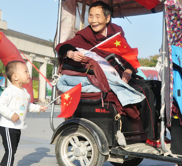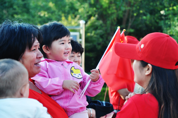 “看著滿眼的國旗紅,心情特別激動,真心為祖國的發(fā)展與強(qiáng)大感到驕傲和自豪?!?0月1日上午,市民王先生帶著家人來到周口公園,感受濃濃的國慶氛圍。
