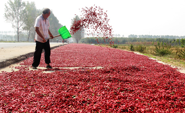 近年來(lái),商水縣郝崗鎮(zhèn)大力實(shí)施辣椒產(chǎn)業(yè)扶貧,通過(guò)黨員干部帶動(dòng)、結(jié)對(duì)貧困戶扶持發(fā)展,種植萬(wàn)畝以上小辣椒,實(shí)現(xiàn)畝效益3000元以上,促進(jìn)了群眾增收致富。圖為昨日上午,該鎮(zhèn)西洄行政村農(nóng)民正在晾曬小辣椒。
