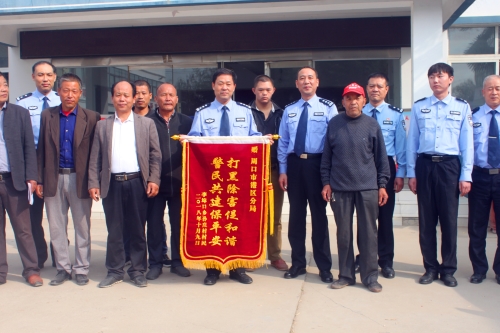 10月9日上午,李埠口鄉(xiāng)孫莊村數(shù)十名群眾代表,來到周口市公安局港區(qū)分局,將寫有“打黑除害促和諧,警民共建保平安”的錦旗和感謝信送到何學(xué)民政委的手中,村民代表對分局鐵腕鏟除該村“村霸”維護(hù)孫莊村和諧穩(wěn)定表示由衷的感謝。