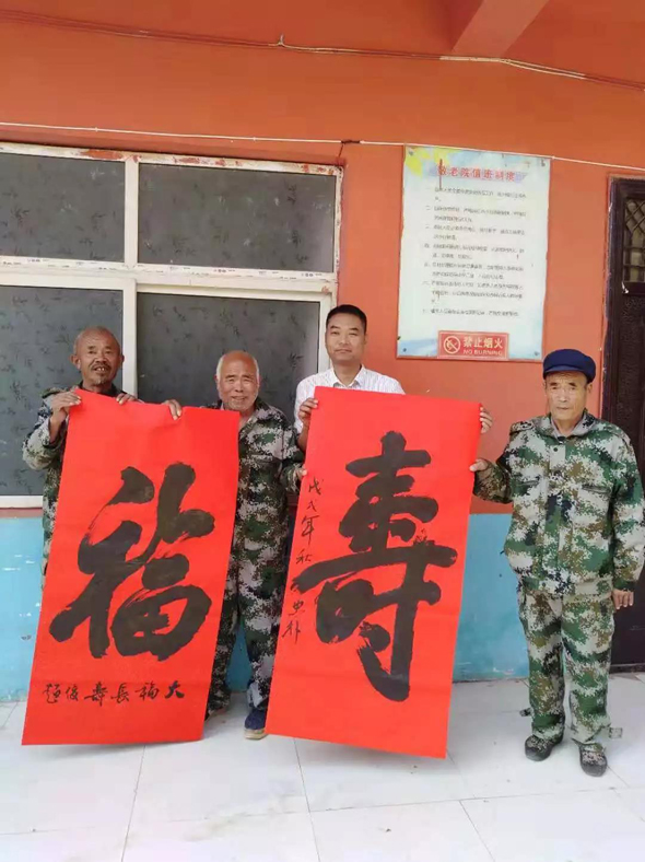 王忠樸(左三)為敬老院的老人送“福”“壽”
