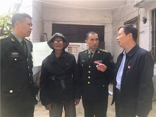 當(dāng)日上午,川匯區(qū)武裝部一行和愛心企業(yè)“佳麗地產(chǎn)”黃經(jīng)理一行到中心城區(qū)城南辦事處走訪了90歲抗戰(zhàn)老兵王四海。王四海1948年參軍入伍,隨部隊(duì)一同南征北戰(zhàn),參加解放海南島等戰(zhàn)役。同時(shí),他們還慰問了參加對(duì)越自衛(wèi)反擊戰(zhàn)的62歲老兵李士明等幾名貧困群眾,為他們送去了米面糧油、軍被等慰問品。