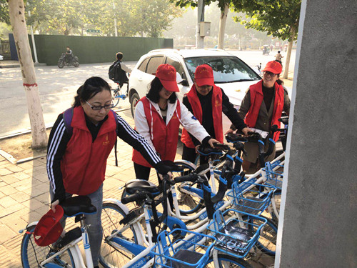 為扎實推進“五城聯(lián)創(chuàng)”工作深入開展,調(diào)動廣大市民積極參與“五城聯(lián)創(chuàng)”工作的積極性、主動性,我市在中心城區(qū)開展了為期一個月的“灑掃庭院迎賓客,文明創(chuàng)建我助力”活動。圖①為中國人民銀行職工在清理小廣告。圖②為中國人壽職工在清掃路面。圖③為市公路局職工在清理綠化帶。圖④為周口師范學院師生在整理共享單車。