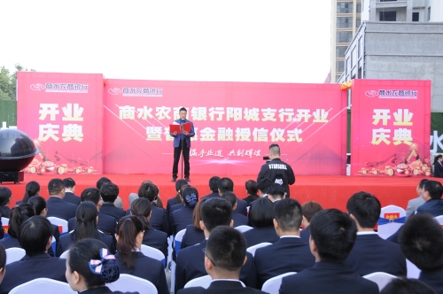 10月24日,商水農(nóng)商銀行舉行陽城支行開業(yè)暨 普惠金融授信儀式。該行行長李楠及中層以上人員參加儀式??h金融辦負責人姜建中 、縣人民銀行行長徐明、銀監(jiān)辦主任張明瑭,部分客戶代表應(yīng)邀出席儀式,儀式由姜建中主持。
