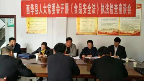 11月2日,西華縣人大常委會副主任趙曉春帶領(lǐng)由部分省、市、縣人大代表組成的執(zhí)法檢查組,對該縣貫徹實施《中華人民共和國食品安全法》情況進行了執(zhí)法檢查。縣政府副縣長趙增先及相關(guān)部門負責(zé)人等陪同。