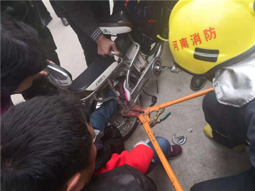 11月15日8時(shí)許,鄲城縣消防指揮中心接到報(bào)警:新華路逸品香山門(mén)口有一女童腳被電動(dòng)車(chē)后輪卡住,急需救助。