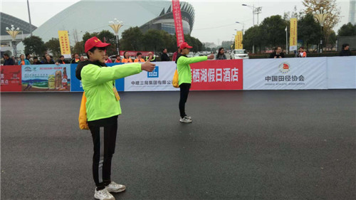 11月18日,在2018周口馬拉松暨善跑中國周口站現(xiàn)場,一個(gè)個(gè)身穿統(tǒng)一服裝的志愿者活躍在賽道之上,他們或給選手舉路線指示牌,或伸出大拇指給路過選手一個(gè)大大的“贊”,成為賽場內(nèi)外一道靚麗的風(fēng)景。