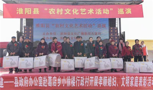 當(dāng)天,不僅表彰了11名孝順媳婦、11個(gè)文明家庭,贈(zèng)送了價(jià)值3萬(wàn)余元的辦公用品、慰問(wèn)品和各類圖書1000余冊(cè),還開展了義診活動(dòng)。同時(shí),由縣政府辦公室文藝志愿者、社會(huì)義工等共同為廣大群眾送上了一場(chǎng)文藝盛宴。