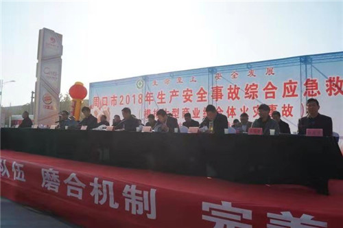 11月23日上午,周口市大型商業(yè)綜合體火災(zāi)事故應(yīng)急救援綜合演練活動(dòng)在淮陽(yáng)縣天鴻世貿(mào)商場(chǎng)舉行。市政府副秘書(shū)長(zhǎng)馮干敏,市安委會(huì)副主任、安監(jiān)局局長(zhǎng)胡恩勇,市消防支隊(duì)副支隊(duì)長(zhǎng)李華兵,淮陽(yáng)縣委書(shū)記馬明超,縣長(zhǎng)王毅,以及各縣(市)區(qū)主管安全工作的政府領(lǐng)導(dǎo)出席演練觀(guān)摩活動(dòng)?;搓?yáng)縣政府應(yīng)急辦、消防大隊(duì)、安監(jiān)局、公安局、衛(wèi)計(jì)委、環(huán)保局、住建局、天鴻世貿(mào)有限公司等20余家單位300余人參與演練活動(dòng)。