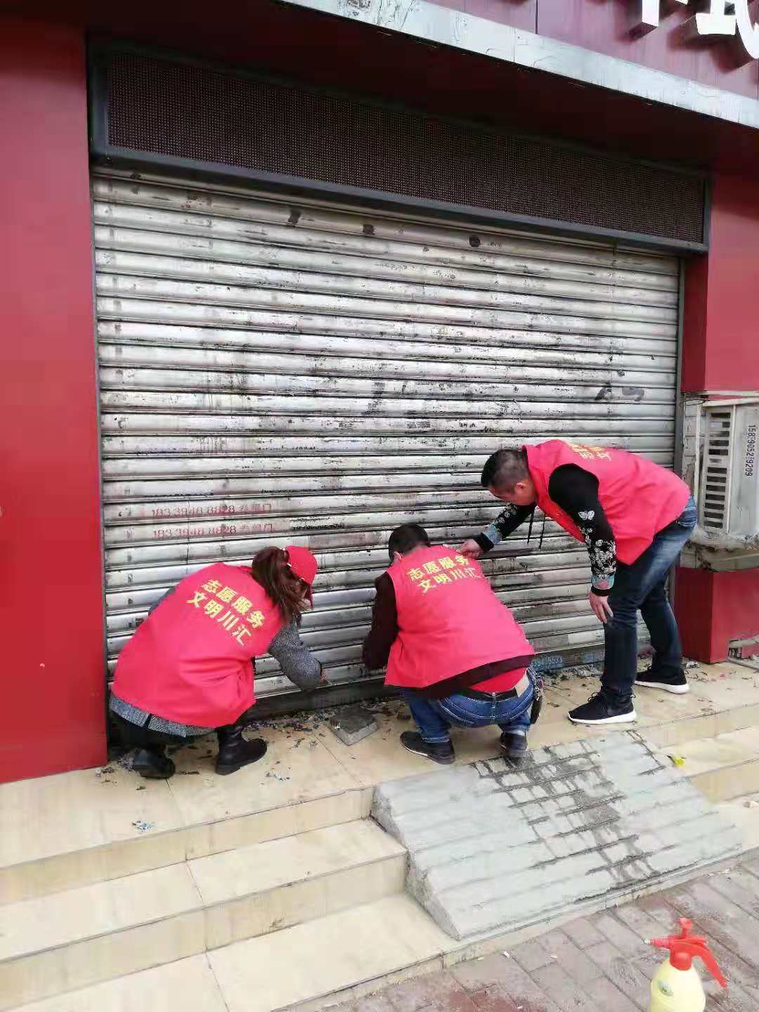 作為城市管理和市容環(huán)境整治的“主戰(zhàn)場”,川匯區(qū)自11月起設(shè)立“市容工作日”,進一步深化“五城聯(lián)創(chuàng)”工作,切實改善中心城區(qū)面貌。11月27日,“市容工作日”活動正式啟動,川匯區(qū)各單位紛紛組織志愿者走上街頭,在各自轄區(qū)開展小廣告清理等環(huán)境綜合整治工作。圖一為志愿者粉刷布滿小廣告的建筑物外墻。圖二為志愿者清理地面上的小廣告。圖三為志愿者清理卷閘門上的小廣告。
