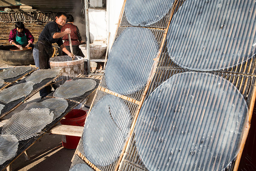 該村地處豫皖兩省交界處,是一個(gè)聞名遐邇的粉皮加工專業(yè)村。村里人手工做粉皮已有近百年歷史,從事粉皮加工的村民達(dá)500多人。 來到這里,您可以看到手工做粉皮的全過程。(王天定文/圖)