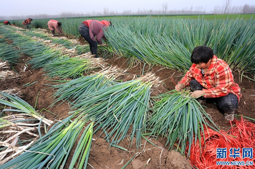 近年來,淮陽縣齊老鄉(xiāng)袁樓行政村大力發(fā)展特色種植,以“合作社+農(nóng)戶”的形式種植大蔥4000余畝,每畝增收14000余元,帶動村里貧困人口35戶124人土地入股和就業(yè),其中已有25戶脫貧。通過發(fā)展種植大蔥,該村從以前人均不足2000元的貧困村變成如今人均達(dá)到1萬多元的小康村。新華網(wǎng)發(fā)(楊正華 攝)