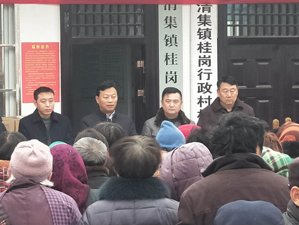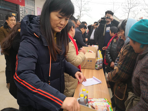 副縣長喬偉講話。商務(wù)局局長李曉紅、清集鎮(zhèn)常委書記吳文靜對開展本次活動(dòng)的目的,意義及有關(guān)扶貧政策做了講解。活動(dòng)由清集鎮(zhèn)鎮(zhèn)長許世杰主持。本次慰問給桂崗村貧困戶送來餃子300件,食用醋300件。“政府想勒真周到呀,這在以前想都不敢想,真心的感謝政府,感謝現(xiàn)在的好政策?!币晃粍傤I(lǐng)到餃子的老黨員感動(dòng)地說。