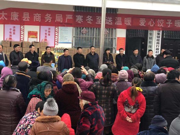 12月21日下午,冬至前夕,太康縣副縣長喬偉、縣商務(wù)局局長李曉紅,清集鎮(zhèn)黨委書記吳文靜,帶著對貧困群眾的關(guān)心、關(guān)愛,到太康縣清集鎮(zhèn)張子影行政村、桂崗行政村開展嚴(yán)寒冬至送溫暖,愛心餃子暖人心扶貧慰問活動(dòng)。
