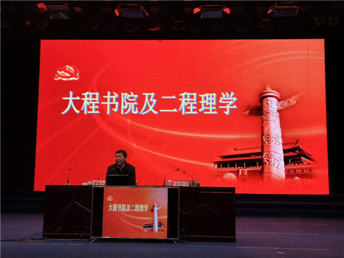 會前,與會人員首先觀看了扶溝文化宣傳片《人文扶溝》。會上,中共中央黨校哲學教研部副主任、博士生導師董振華教授以《大程書院及二程理學》為題,從大程書院及二程其人其事、二程思想的歷史地位、二程理學的核心要義、二程理學的當代價值等四個方面,通過深入淺出、引人入勝的講解,把二程文化的起源發(fā)展脈絡清晰明了地展現在聽眾面前。