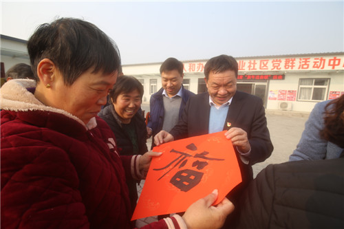 依然是在年末歲初的冬日暖陽里,12月20日中午1時(shí)30分,區(qū)委書記李宗喜再次來到川匯區(qū)小橋辦事處興業(yè)社區(qū),和10名書法家一起,現(xiàn)場為社區(qū)居民寫春聯(lián)送祝福。