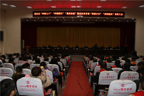 12月29日,鹿邑縣“孝順兒子”“孝順媳婦”“最美家庭”暨首屆“美麗鄉(xiāng)村”“最美庭院”表彰大會(huì)在縣委學(xué)校一樓報(bào)告廳召開(kāi)??h領(lǐng)導(dǎo)付吉廣、武衛(wèi)東、劉銀、宋克言等出席會(huì)議??h委宣傳部、文明辦、縣總工會(huì)、縣婦聯(lián)、縣委農(nóng)辦、縣扶貧辦等部門(mén)負(fù)責(zé)人與來(lái)自全縣各鄉(xiāng)鎮(zhèn)辦事處的300多名干部群眾代表參加會(huì)議。