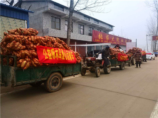1月14日12時30分,滿載10萬斤愛心蘿卜的農(nóng)用車從張老家行政村整裝待發(fā)。這些愛心蘿卜將被運到周口經(jīng)濟開發(fā)區(qū)廣場(南廣場)、周口精神病院、長青街中屹縫紉機商場等地向環(huán)衛(wèi)工人及弱勢群體發(fā)放。記者 黃佳 攝