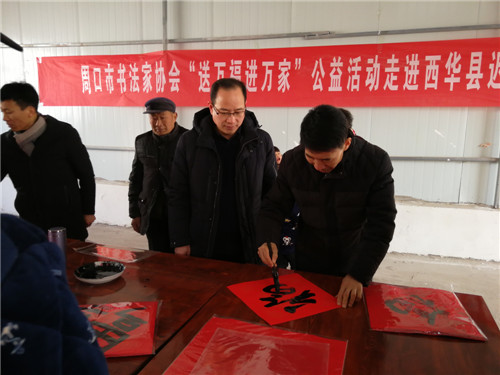 “‘迎新春走基層,進萬家送萬福’活動已連續(xù)開展多年,今年市書協(xié)持續(xù)開展,就是為了進一步弘揚傳統(tǒng)文化,普及書法知識,助推扶貧攻堅,為周口這座文化名城建設(shè)作出應(yīng)有的貢獻。”周口市書協(xié)主席王猛仁說。