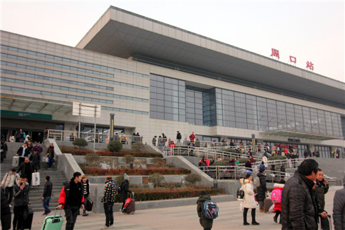 圖為20日的周口火車(chē)站廣場(chǎng)已經(jīng)熙熙攘攘。記者 金月全 攝