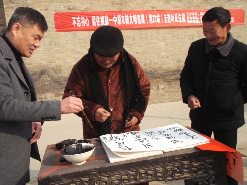 鄧城鎮(zhèn)范莊村72歲的范長印老人觀展后感觸頗深地說:“這些展品我很多都見過、用過,不過用起來真費(fèi)勁真受罪啊!現(xiàn)在農(nóng)忙季節(jié)機(jī)器一響,糧食嘩啦啦就進(jìn)家了。我這個(gè)年齡的人最能體會到咱們國家的進(jìn)步和社會的美好!”隨后,老人在留言薄上用握慣農(nóng)具的粗糙大手握起毛筆寫下了“新時(shí)代,得民心”幾個(gè)字。字雖不工整但他的滿腔真情感動了在場的群眾,大家把熱烈的掌聲送給范長印老人。