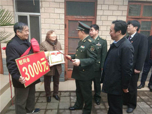 該縣擁軍優(yōu)屬“七送”活動具體為:送“功臣之家”牌匾、送立功授獎(jiǎng)喜報(bào)、送慰問金、送慰問品、送春聯(lián)年畫、送軍屬光榮牌、送“周口好兵”宣傳卡等“大禮包”。