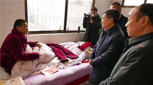 隨后,皇甫立新、劉國慶一行來到槐店鎮(zhèn)高營行政村,看望慰問了困難黨員高功命、勞模高延旭、困難群眾高四清,給他們送去了慰問品和慰問金,向他們致以新春的問候和祝福。并叮囑隨行人員要時刻把老黨員、勞模、困難群眾的冷暖放在心上,加大保障力度,及時了解他們的生產(chǎn)生活所需,積極主動幫助他們解決實際困難,努力提高他們的生活水平和質(zhì)量,把黨和政府的關(guān)懷真正落到實處,使他們真真切切感受到黨和政府的溫暖。