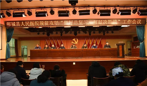 2月15日下午,鄲城縣人民醫(yī)院在門診五樓召開脫貧攻堅(jiān)“做好總復(fù)習(xí),打好決勝戰(zhàn)”工作會議,傳達(dá)落實(shí)縣衛(wèi)計(jì)委扶貧工作會議精神,部署脫貧攻堅(jiān)工作。鄲城縣人民醫(yī)院院長于健偕全體院領(lǐng)導(dǎo)班子出席會議,院黨委書記高飛主持。健康扶貧辦、醫(yī)保、財(cái)務(wù)、宣教、醫(yī)政、護(hù)理、藥事、醫(yī)療裝備等肩負(fù)健康扶貧任務(wù)的職能科室負(fù)責(zé)人、全體護(hù)士長、3個(gè)幫扶村扶貧隊(duì)長及全體扶貧隊(duì)員200余人參加會議。