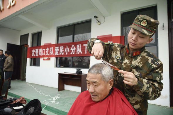 鄉(xiāng)村老年人們的身體狀況牽動著支隊領(lǐng)導(dǎo)的心,他們派出支隊醫(yī)務(wù)人員走進(jìn)村落,在簡易的地方辦起巡診。藥盒上的細(xì)心標(biāo)記,手把手的診療,情真意切囑咐,都是官兵們真切的表達(dá)。支隊理發(fā)員帶著理發(fā)工具和一顆赤誠的心來到了村里,為老人們邊理發(fā)邊嘮家常,老人臉上樂開了花兒,笑著說“我家孫子和你大小差不多哩!”村里的孩子們也很喜歡這群穿著軍裝的叔叔們,不僅因為他們每次來都會送上精美學(xué)習(xí)用品,先進(jìn)的多媒體設(shè)備,更因為他們身上軍人特有的責(zé)任與擔(dān)當(dāng)。