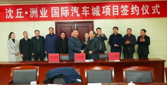 2月26日,沈丘洲業(yè)國際汽車城項目簽約儀式在錦華大酒店舉行。沈丘縣委書記皇甫立新,縣長劉國慶,縣委常委、常務(wù)副縣長郝四春,副縣長呂孝坤,副處級干部張曉,上海洲業(yè)企業(yè)管理有限公司董事長李海波,總裁李榮輝等出席簽約儀式,縣直相關(guān)職能部門負(fù)責(zé)人參加了簽約儀式。
