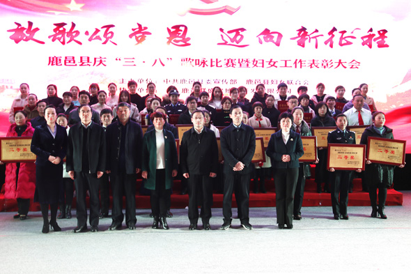 隨著“三八婦女節(jié)”的日益臨近,為宣傳貫徹黨的十九大精神,豐富全縣婦女群眾的業(yè)余文化生活,3月5日上午,由鹿邑縣委宣傳部、縣婦聯(lián)聯(lián)合舉辦的慶“三八”歌詠比賽暨婦女工作表彰大會在縣文化中心報告廳舉行??h領(lǐng)導(dǎo)武衛(wèi)東、劉銀、翟杰、宋克言等觀看比賽并為2018年度20個“婦女工作先進集體”、10名“三八紅旗手”先進個人頒獎。