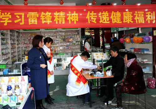 西華縣北華醫(yī)藥黨支部組織黨員志愿者為群眾量血壓、測血糖,免費(fèi)發(fā)放鈣片、提供茶水等義務(wù)服務(wù)活動(dòng)。