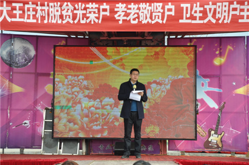 3月5日上午,商水縣化河鄉(xiāng)與縣移動公司在大王莊文化廣場召開脫貧光榮戶、孝老敬賢戶文明衛(wèi)生戶表彰暨送文化、衛(wèi)生下鄉(xiāng)活動議會。縣委常委、宣傳部長李本磊、縣工會主席盧紅兵、縣移動公司經(jīng)理黃小帆、化河鄉(xiāng)黨委書記高永強等出席活動現(xiàn)場。大王莊村及周邊村莊部分群眾500多人參加了活動。