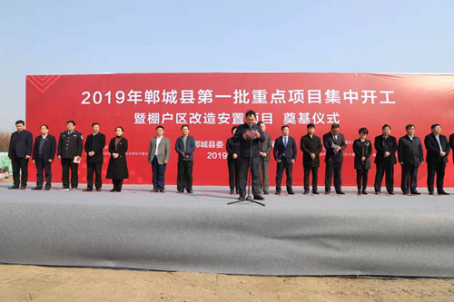 3月6日上午,鄲城縣舉行2019年全縣第一批重點(diǎn)項(xiàng)目集中開工暨棚戶區(qū)改造安置項(xiàng)目開工奠基儀式。縣委書記羅文閣,河南中原建業(yè)城市發(fā)展有限公司董事長陳建業(yè),總裁馬驍騰,縣長李全林,縣人大常委會(huì)主任李建軍,縣政協(xié)主席姜永來,縣委常委、常務(wù)副縣長王智華等出席開工儀式。