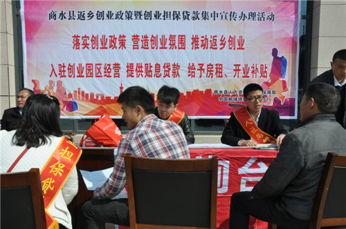 3月18日上午,商水縣人社局和縣郵儲銀行聯(lián)合在省級農(nóng)民工返鄉(xiāng)創(chuàng)業(yè)示范園區(qū)周口汽配城開展創(chuàng)業(yè)補貼、創(chuàng)業(yè)擔保貸款優(yōu)惠政策宣傳。