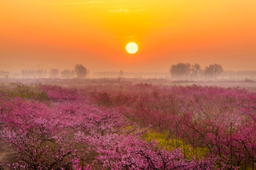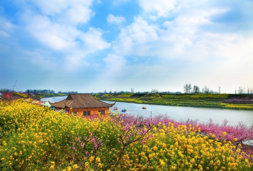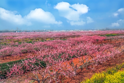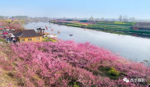 每年3月底至4月上旬,西華潁河兩岸萬畝桃花競(jìng)相開放,樹下金燦燦的油菜花、綠油油的麥苗相映成趣,紅、黃、綠構(gòu)成了五彩繽紛的人間仙境,置身其中,花香沁人心脾,色彩絢麗奪目,景色美不勝收,恍如身處陶淵明筆下的“世外桃源”。